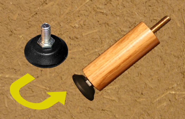 Visser les pieds réglables sur les poteaux en contact avec le sol. Basez-vous sur le plan de votre meuble, fourni dans le colis, ou à défaut, visible sur la page produit de votre meuble.